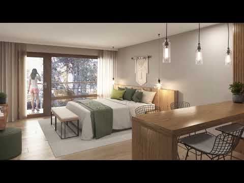 El complejo consta de subsuelo de cocheras, PB + 3 pisos, con 38 departamentos de diferentes medidas y distribución de 1 o 2 y 3 ambientes con balcones de deck con vistas abiertas a la montaña. Cocheras subterráneas desde donde se puede acceder a las unidades. SUM con piscina “in-out” climatizada integrada, sector de parrillas y laundry. Ubicación de fácil acceso todo el año, emplazados en el medio del bosque, con una vista excepcional al cordón del Bayo. Cerca del centro y apartado del caos turístico de temporada alta.